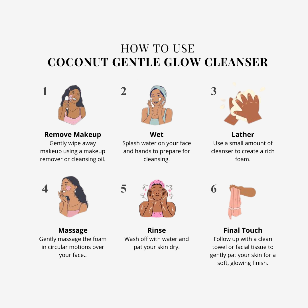 A: The Coconut Gentle Glow Cleanser stands out because of its unique blend of prebiotics, organic coconut oil, and niacinamide. This combination not only cleanses but also nourishes and brightens your skin, leaving it healthy and radiant. It’s more than just a cleanser—it’s a skin-loving ritual!